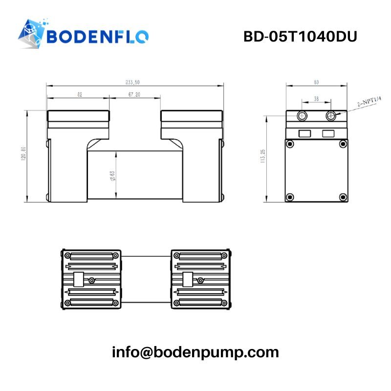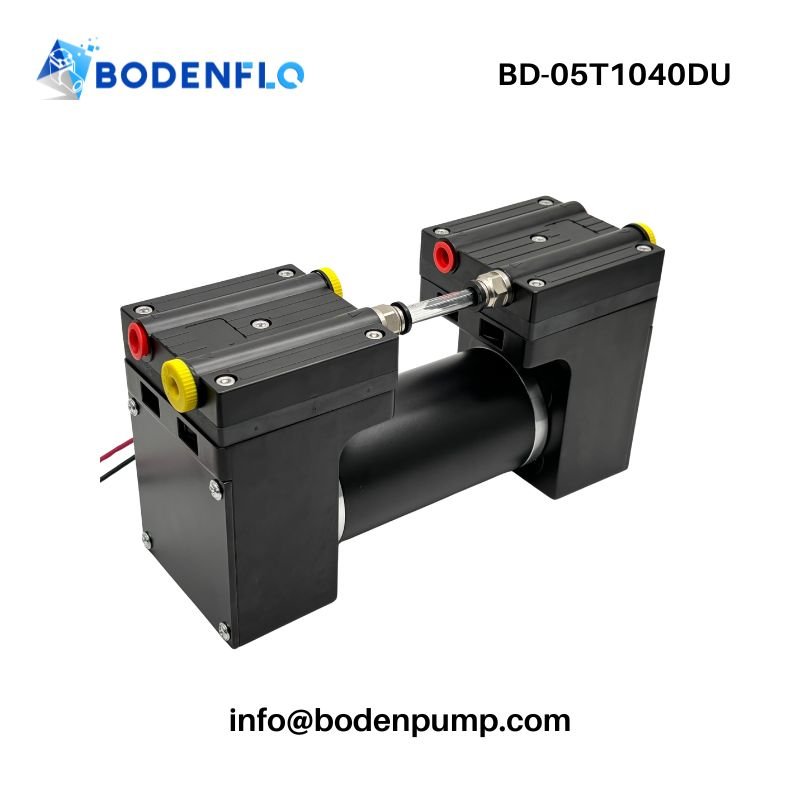 The BODENFLO BD-05T1040DU is a high-performance double head air pump designed for high-flow and high-vacuum industrial tasks. Featuring an advanced high-end brushed DC motor, aluminum pump head, and precision dynamic balancing, it achieves exceptional suction, stable pressure output, and long operational life.