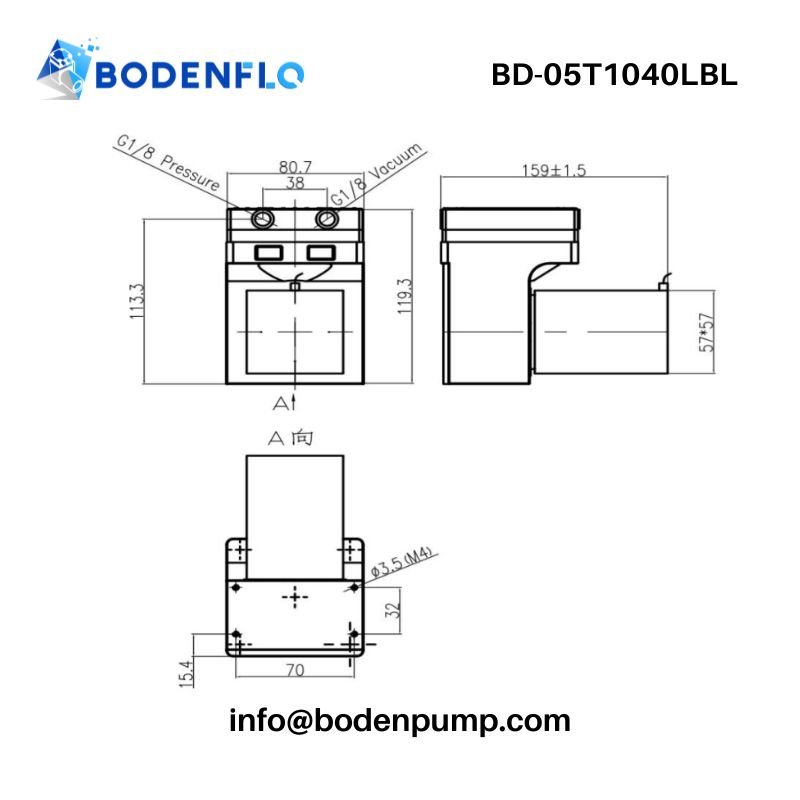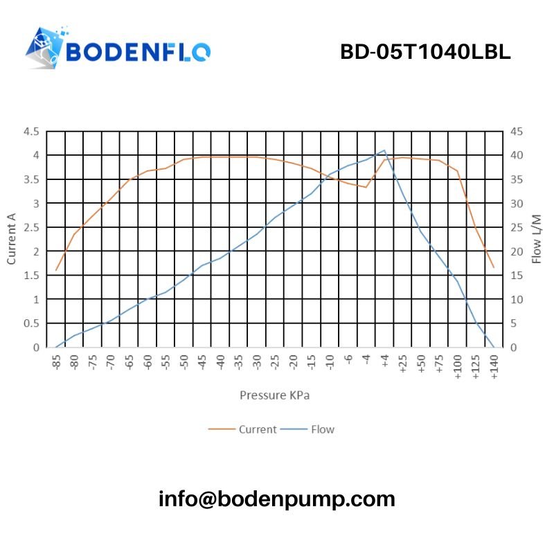 The BD-05T1040LBL is a high-flow, precision-engineered diaphragm pump designed for demanding industrial environments requiring strong suction, stable delivery, and consistent long-term performance. Built with a high-end brushless DC motor, imported PPS pump head, and aluminum alloy electrophoresis-treated body, this model delivers 40 L/min airflow with up to –85 kPa vacuum while maintaining low noise and smooth operation.