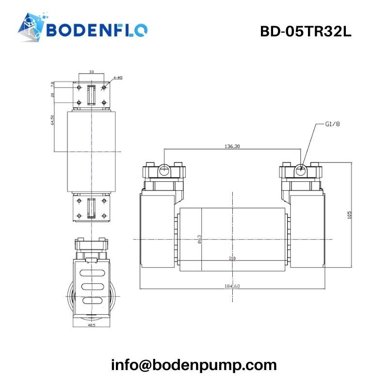 Powered by a high-end 150W brushed DC motor, the BD-05TR32L is built for continuous-duty performance in environments where high pressure up to 8–10 bar is required (with limited flow at 10 bar). The oil-free compression design ensures clean, contamination-free gas handling for medical, analytical, automation, and environmental systems.