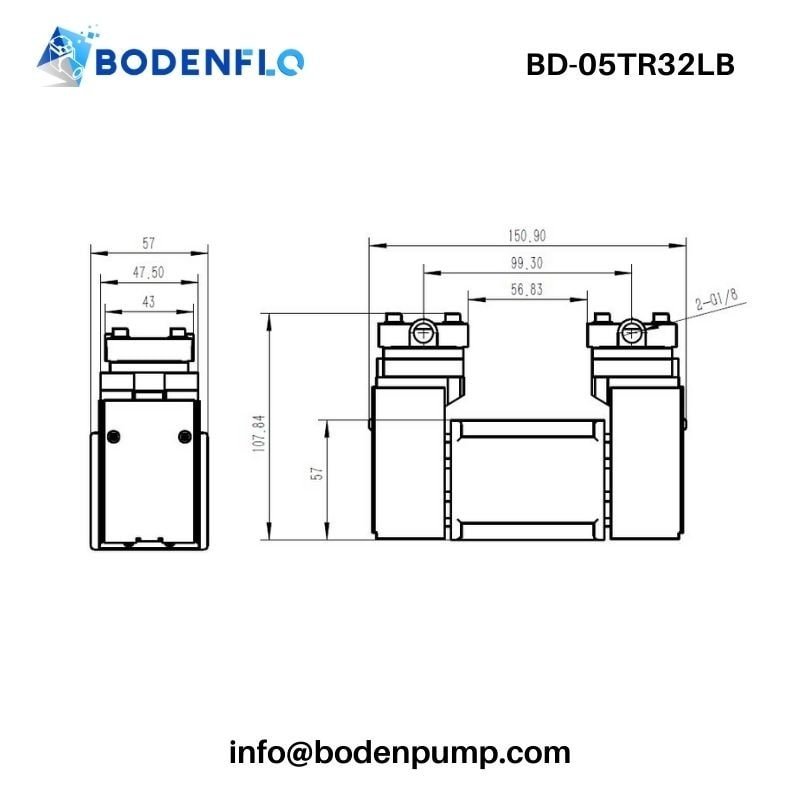 The BD-05TR32LB is a compact double-head swing piston pump built for systems that demand high pressure density and deep vacuum capability within a limited installation space.