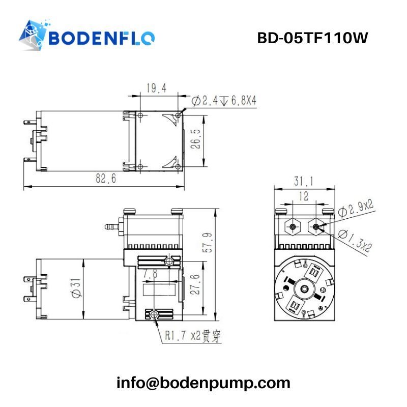 The BD-05TF110W is a compact oil-free micro liquid pump designed for OEM ink delivery and precision fluid transfer systems, offering 110 mL/min controlled flow, self-priming diaphragm operation, and low-noise performance for digital printing equipment and analytical instruments.